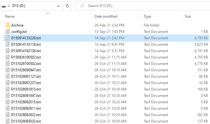 - Select the raw data files which have the .txt file extension and copy them to your computer.